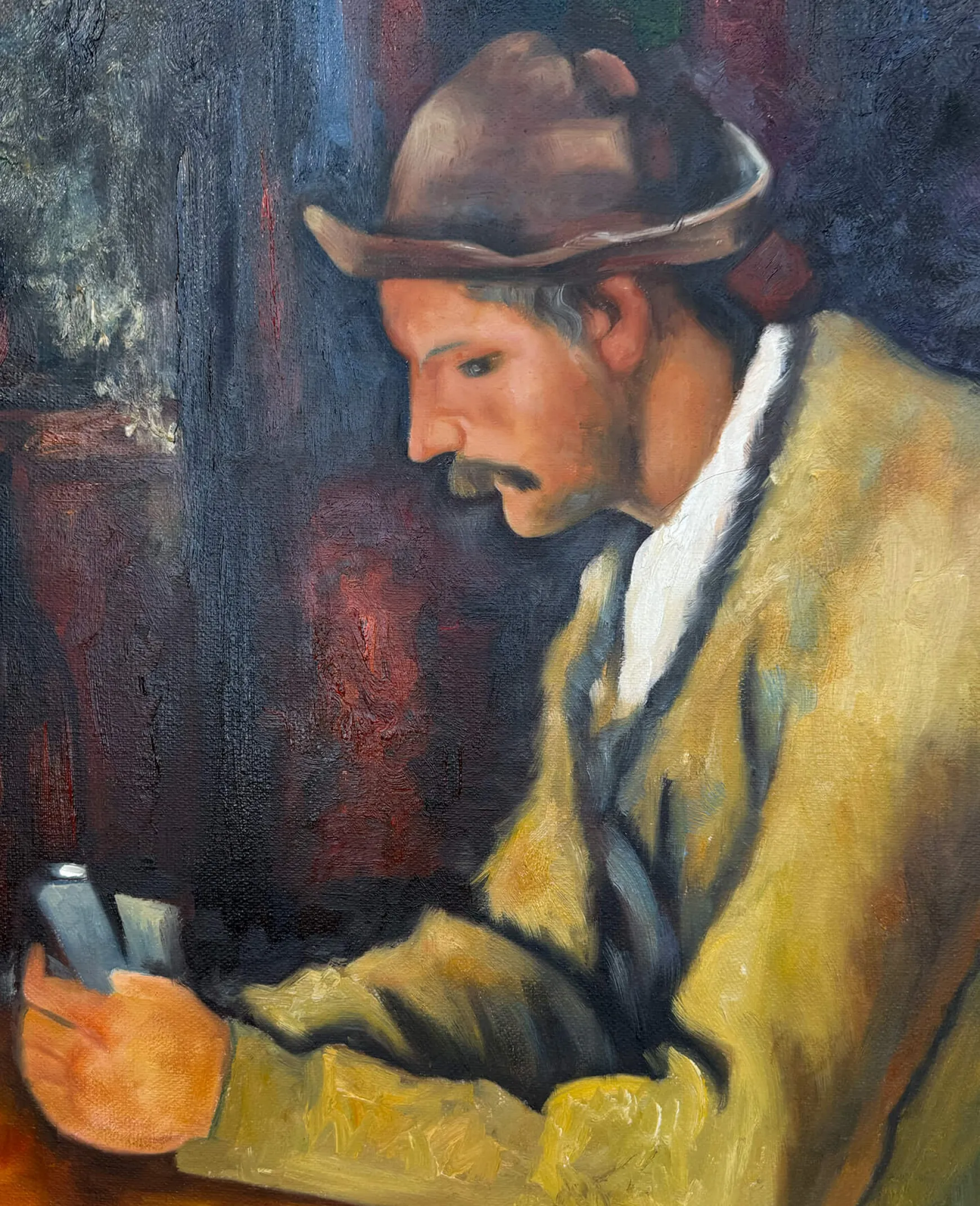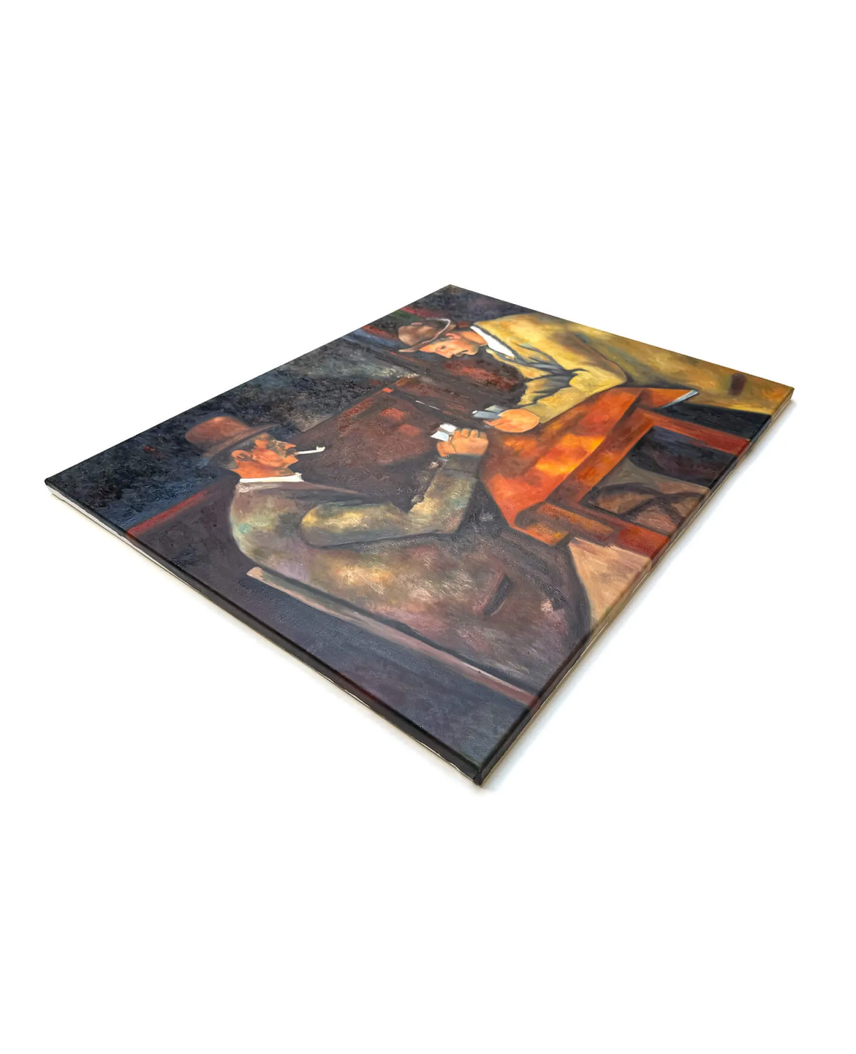 Dans les années 1890, au sommet de sa carrière, Paul Cézanne réalise une série de tableaux post-impressionnistes autour du jeu. L’artiste, en réduisant les traits et les détails ne cherche qu’a garder l’essentiel : la gravité de l’affrontement entre ces deux personnages. Cette scène de genre est comme suspendue dans le temps.