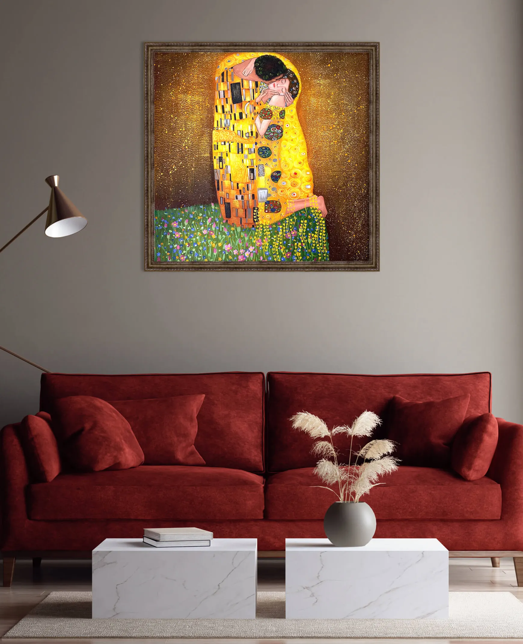 Il s’agit du travail le plus populaire de Gustav Klimt. Il peint cette œuvre entre 1907 et 1908, à l’apogée de sa période dorée. L’œuvre présente un couple qui s’embrasse, dissimulé sous un immense drap d’or qui donne une dimension d’éternité au couple qu’elle enserre et protège: du coté de l’homme, on observe des symboles de force, de virilité et de masculinité; du côté de la femme, Klimt présente plutôt des symboles de féminité et de maternité.